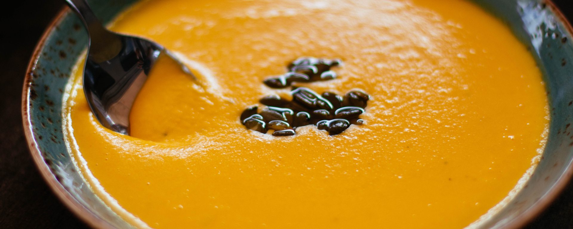 Check on the squash cubes. If soft, add to the fried onions. Add bay leaves. Pour broth onto pumpkin until all the pieces are covered and bring to a boil, then let cool down for 10-15 minutes with a lid on the pot. Immerse a blender into the pot or pour the soup into a food processor and grind to a smooth paste. Taste the soup and season it with two pinches of salt first, then with all or some of these spices: